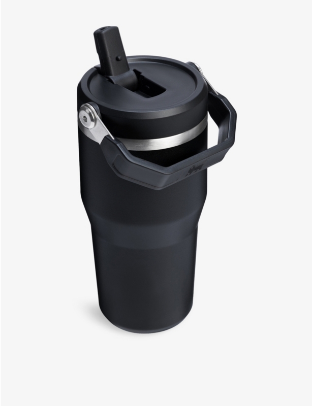 - Branded tumbler, reusable straw, closed rotating cover, ergonomic handle, keeps liquids cold for 11 hours, hot for 7, and iced for 2 days
