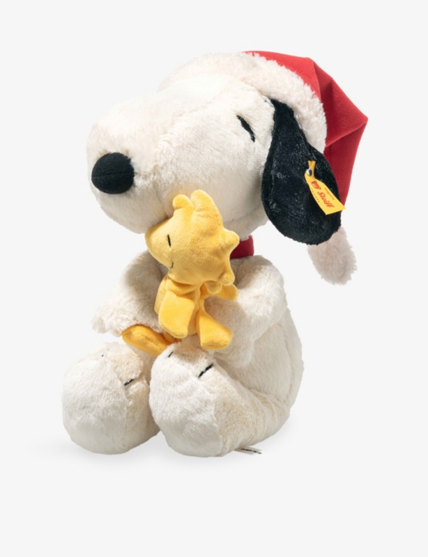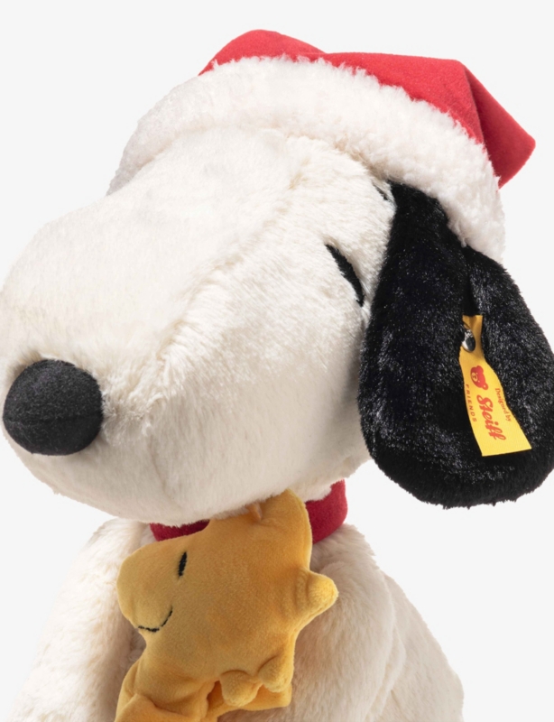 - Snoopy design, floppy ears, stainless steel branded “Button in Ear""