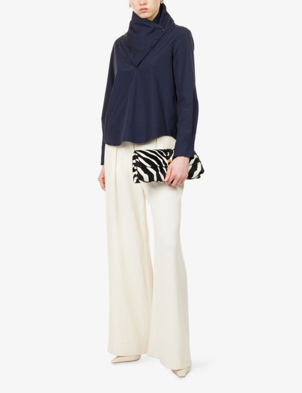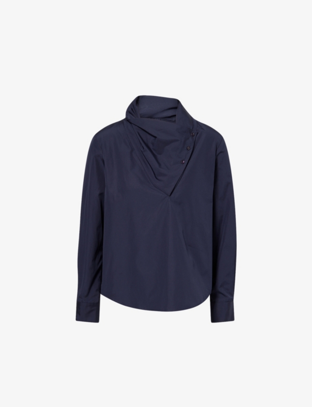 - Relaxed fit, collar, long sleeves, patch pocket at front, straight yoke and pleat at back, split at sides