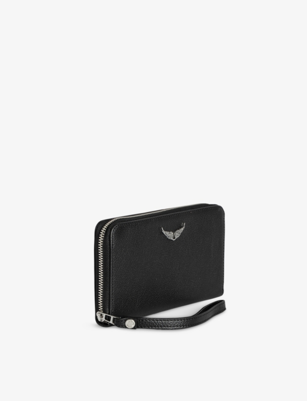<li>Two compartments, two slip pockets, silver-toned metal hardware, logo-embossed, branded zip tabs